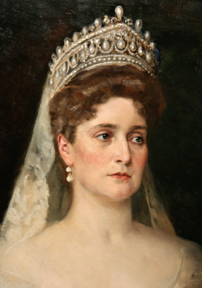 Диадема-кокошник с 25 подвесными грушевидными жемчужинами была создана придворным ювелиром Болином в 1841 году для императрицы Александры Фёдоровны, супруги Николая I.