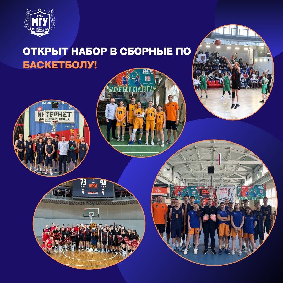 🤩 Студенческий спортивный клуб «МанГУст» МГУ имени А.И. Куинджи объявляет приём спортсменов в мужскую и женскую сборные команды по баскетболу. Если ты чувствуешь в себе азарт, любишь командный дух и хочешь представлять университет на соревнованиях — самое время выйти на площадку! ▶️ Для записи обращайся к главному тренеру Никите Алексеевичу Лименько (тел.: +79496211940). 🔥 Наша баскетбольная семья ждёт именно тебя! #МГУимениКуинджи