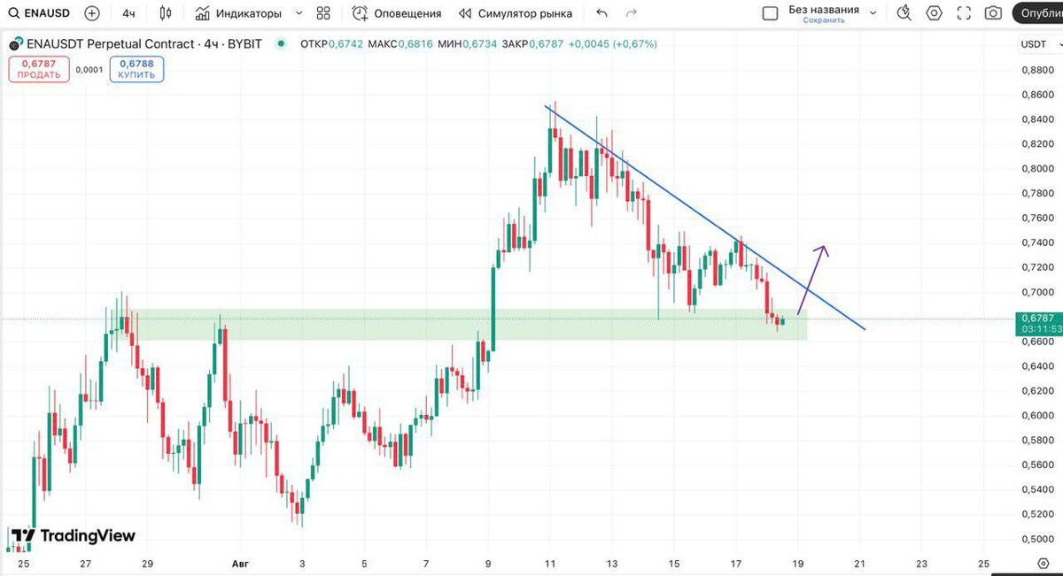 ENA Цена подошла к сильному уровню, жду пробоя нисходящей трендовой с дальнейшим ростом 📈