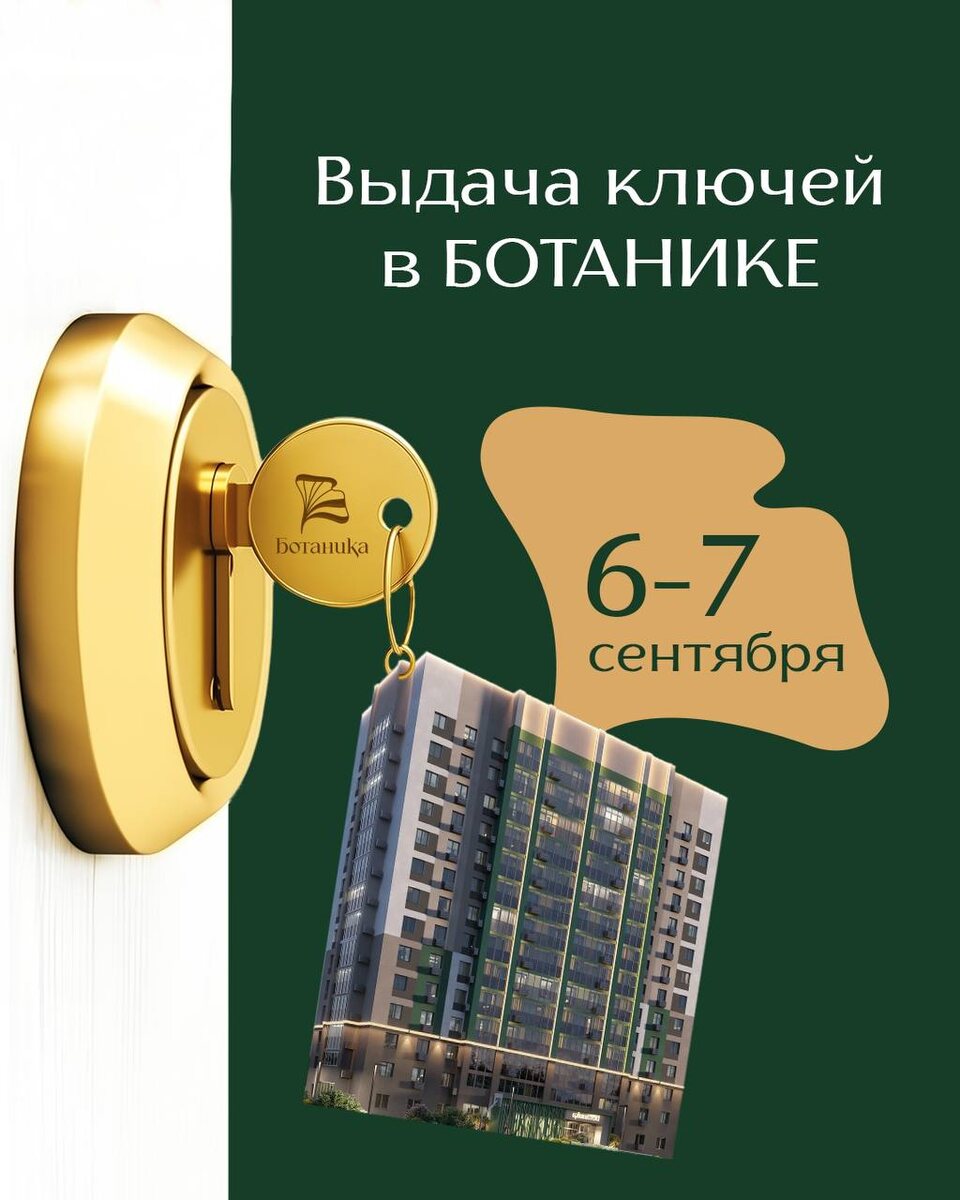 За ключами в БОТАНИКУ! Время пришло! 6 и 7 сентября состоится долгожданное вручение ключей от квартир с предчистовой отделкой. 🌱Встречаемся в 10:00 на ул. Баталина, 27! 🔑Все ли успеют получить ключи? Да! Мы заранее связались с владельцами квартир, чтобы записать на встречу в удобное время. 🔑Приходить, если у меня готовая отделка? Да! Мы приглашаем всех жителей БОТАНИКИ на долгожданный праздник. Вне зависимости от варианта отделки квартиры. Чтобы узнать о вручении ключей от квартир с готовым ремонтом, подписывайтесь. Здесь вы в числе первых получите необходимую информацию! 😉 📞 +7 (8412) 50-98-93