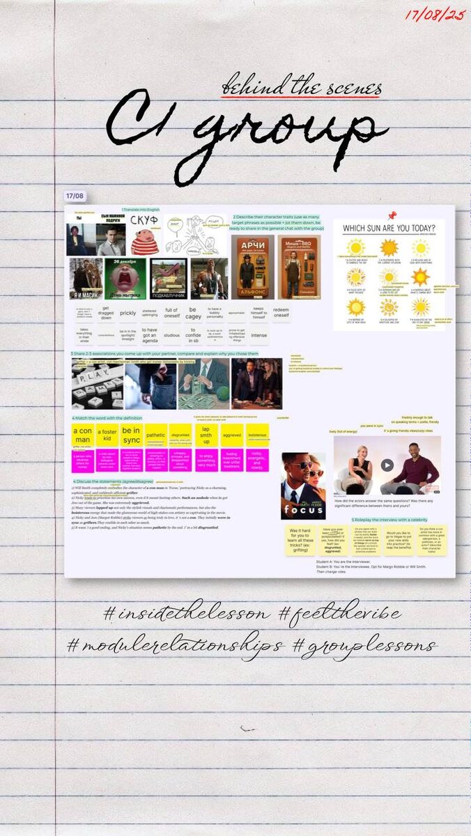 Отзывы как всегда греют душу 🩷 в это вс было занятие с группой С1, мы продолжаем блок relationships, у нас был film-based урок-обсуждение по фильму Focus с Уилл Смитом и Марго Робби (его просмотр был домашкой), решила первый раз попробовать такой формат, и my lovely students took to it (=started to like) 🥰 Вот что написала мне ученица после: Я думаю практика с фильмом отличная - не успела сказать на занятии Так что занятия могут быть и не только по учебнику, а в курс С1 я вплетаю аутентику 💯 чтобы наполнить наш лексический курс самой живой и актуальной лексикой, слушайте еще замечательный отзыв Полины, новой ученицы после пробного первого занятия, столько приятностей!! 💗 И вам парочка интересных фраз из фильма: 🔸He’s onto us — он раскусил нас 🔸Boisterous — noisy, energetic: шумный, буйный (crowd/fans/children) 🔸To lap smth up — enjoy very much: упиваться чему-либо 🔸Be in sync — быть в гармонии, на одной волне 🔸Con man/woman; con artist; grifter — sb who deceives people for