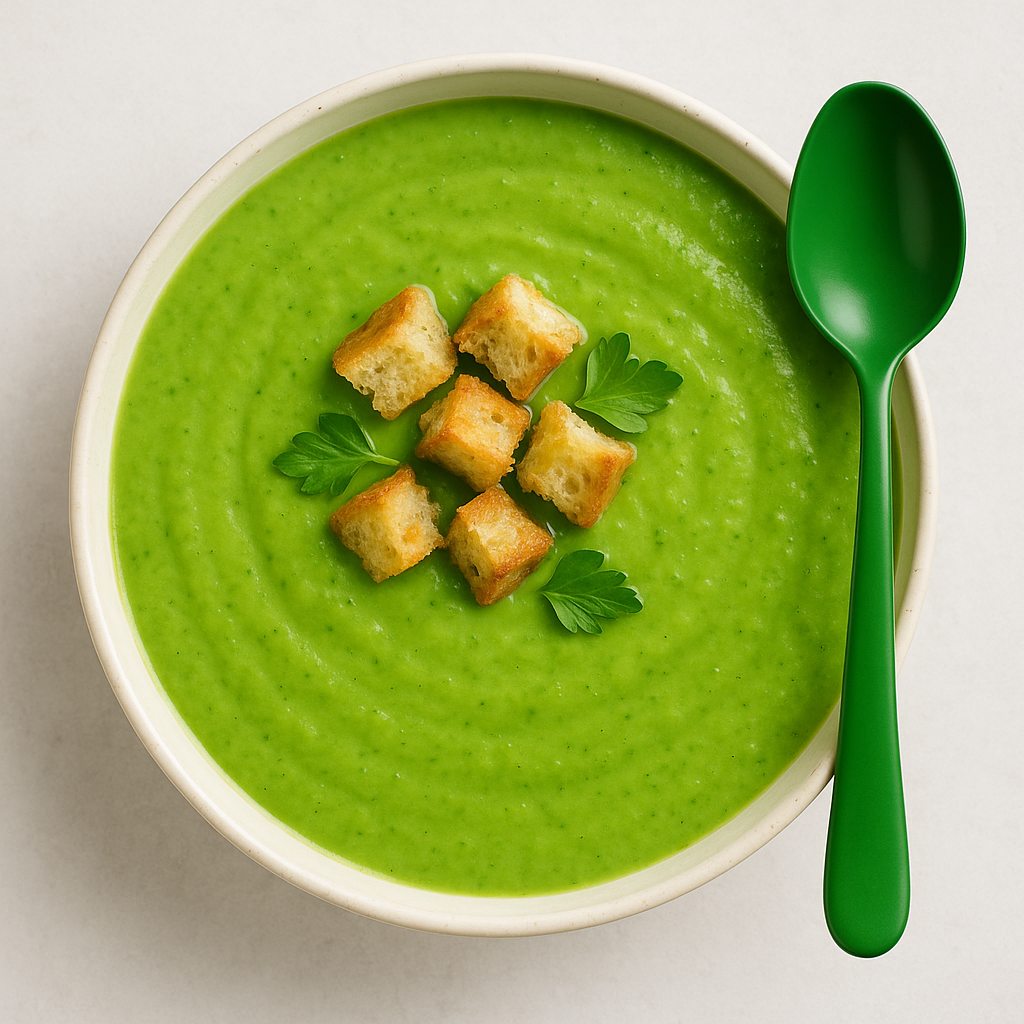 Когда времени нет, а хочется чего-то горячего и питательного — этот суп-пюре из зелёного горошка спасает ситуацию. Он ярко-зелёный, нежный и очень простой. Никаких сложных ингредиентов, только блендер и 15 минут.