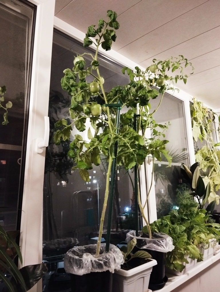 Рассказываю о моем четвертом кусте помидоров, сорт называется Непас 2. Непас значит непасынкующийся. Сначала он меня не впечатлил. Пока у других росли пасынки, цветы и листья, он просто рос вверх и ничего с ним делать было не надо. Но в этом и прелесть, растет сам по себе и не требует формировки. Высота метр. Помидоров 8 штук. Одна начала краснеть. Но, возможно все дело в том, что я поставила его на место Вспышки и он перенял ее энергию и жизненную силу! В-общем, если выращивать в огороде, я бы оставила этот сорт. В нормальных условиях у него должен быть хороший урожай, и он не требует много ухода, не надо следить за пасынками.