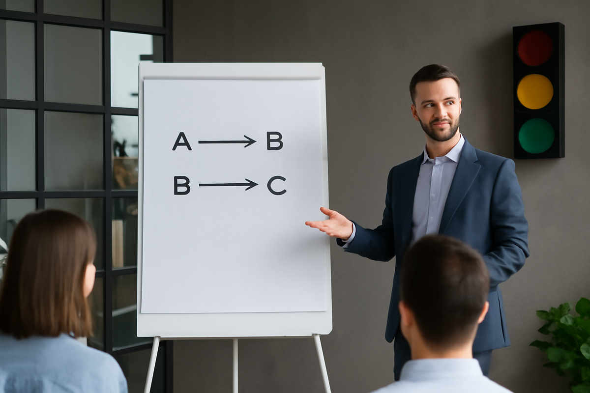 Система "светофор" помогает стажёру и наставнику понимать, в какой стадии находится процесс и что нужно усилить, чтобы двигаться дальше. Это даёт четкость и уверенность, так как каждый шаг подкреплён конкретными действиями.