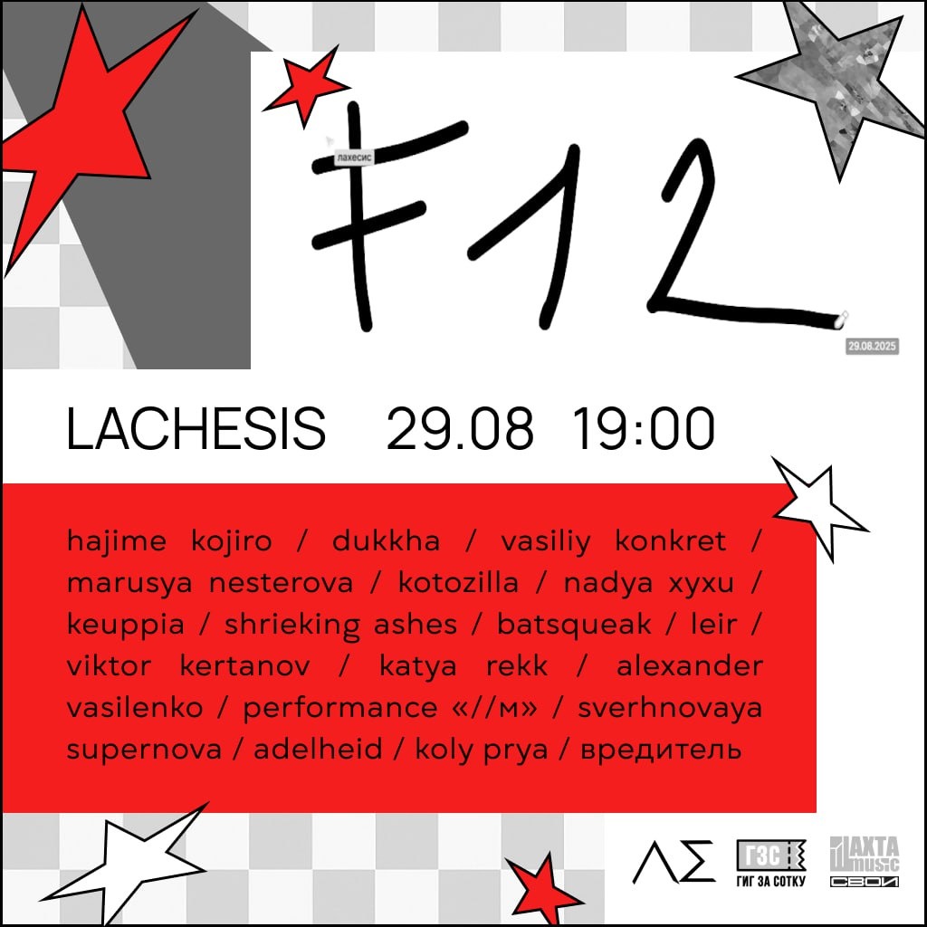 Мск 2025.08.29 Hajime Kojiro / Dukkha / Vasiliy Konkret / Marusya Nesterova / Kotozilla / Nadya Xyxu / Keuppia / Shrieking Ashes / Batsqueak / Leir / Viktor Kertanov / Katya Rekk / Alexander Vasilenko / Performance «//м» / Sverhnovaya Supernova / Adelheid / Koly Prya / Вредитель † Лахесис 19:00 от 800р † vk.com/f12_concert
