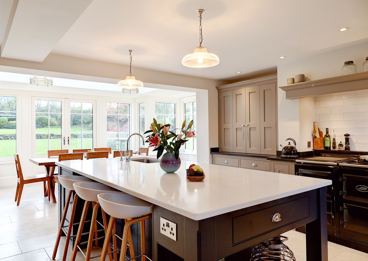3. Островная. Такой вариант расстановки возможен для помещений площадью более 16 кв. м. В центре располагается рабочая область («остров»), предназначенная для приготовления и приема пищи. Чаще всего встречается в квартирах-студиях.