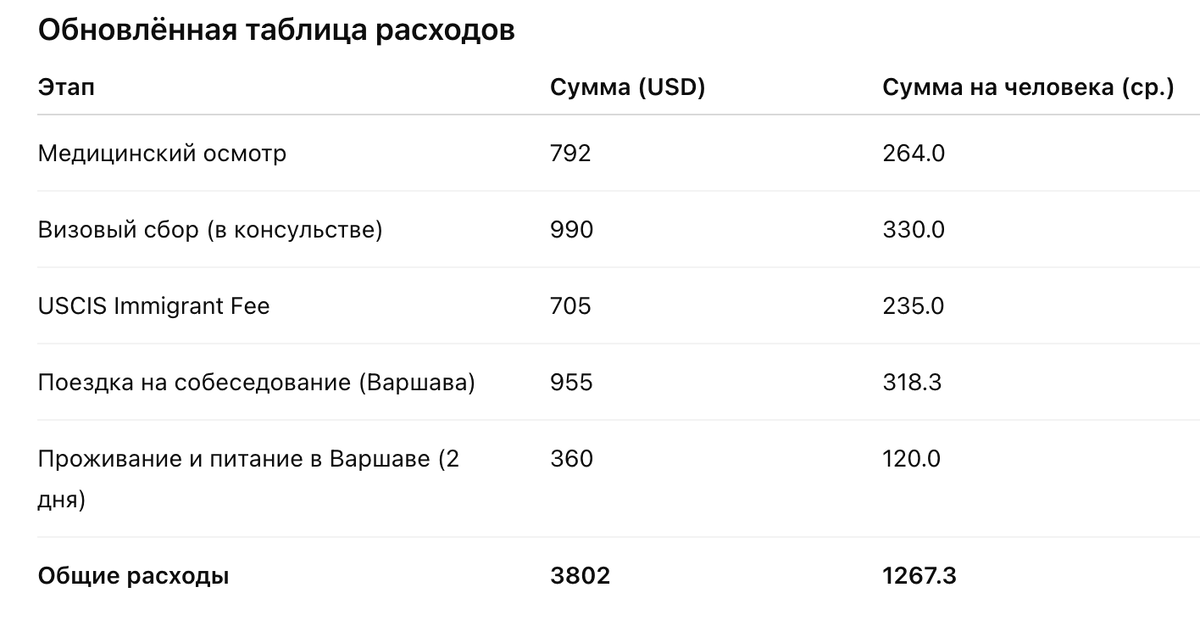 Прежде всего не все понимают, что сам факт победы в лотерее не гарантирует получение грин карты. Поэтому, когда победители узнают: ... То многие выбирают отказаться от идеи переезда в США. Так как все же это дело ответственное и накладное. Ниже мы расскажем про весь процесс и посчитаем, сколько примерно денег нужно семье победителей из РФ, которые планируют воспользоваться выигрышем! Представьте, что вы победили в лотерею GREEN CARD: что вам делать дальше: 1. Заполнить онлайн анкету DS-260. 2. Ожидать, когда вам назначат дату собеседования. Самостоятельно ловить дату НЕ надо. 3. Собрать документы к собеседованию: + выписки из судебных решений-если вы обвинялись в совершении преступления; 4. Сделать необходимые прививки если вы их ещё не ставили. 5. Пройти медицинский осмотр в МОМ. Это процедура делается после того, как вы уже будете знать дату собеседования. Цена: примерно 273$ с взрослого, 246$ для детей от 2 до 14 лет и 163$ для детей до 2 лет. Запечатанный конверт с результатами н