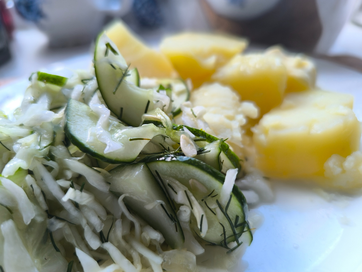 Обед. Картошечка и салат "Похудейка". Плюс ягодный чай (помните, ягоды измельчала и замораживала в формочках). Рецепт ТУТ: