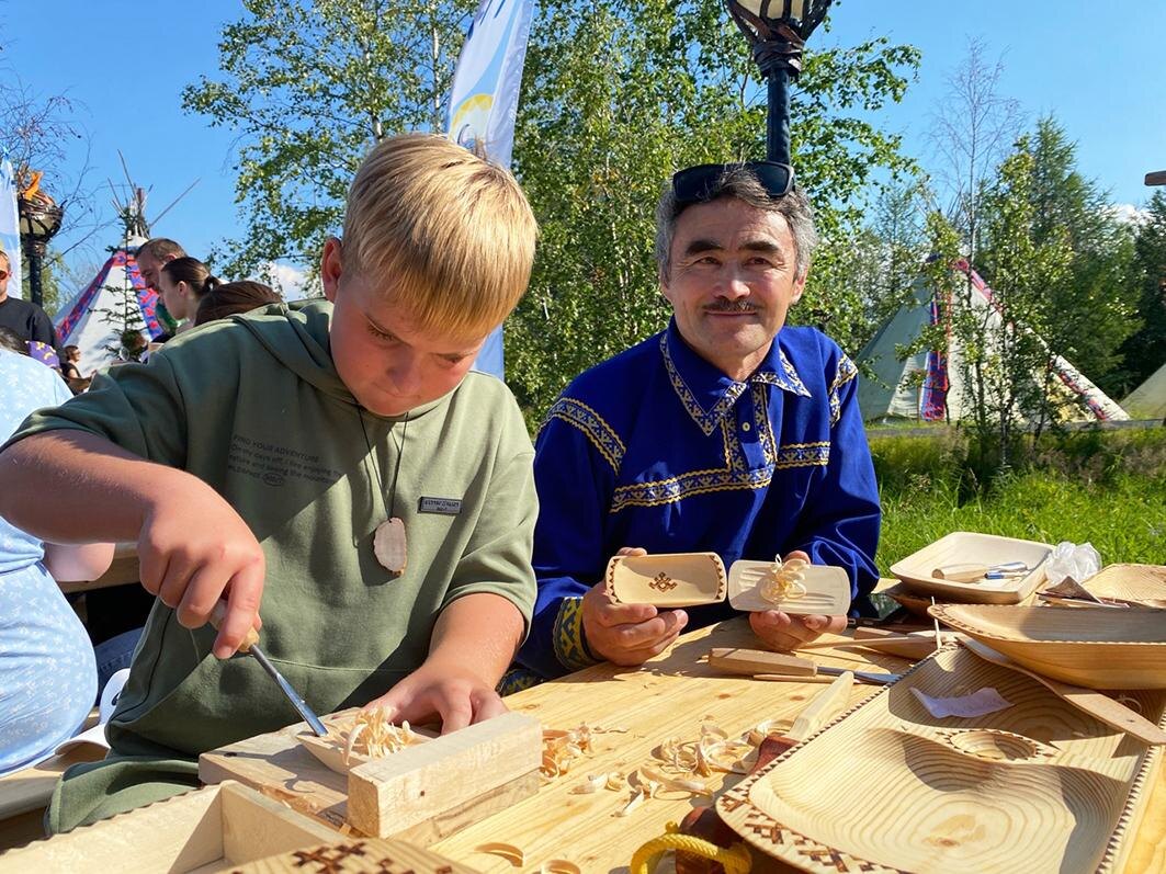 День, объединяющий культуры и традиции В окружной столице празднование Международного дня коренных народов мира прошло в этнографическом парке Горнокнязевска. Этнофестиваль представил весь колорит культуры северных народов — ненцев, ханты, селькупов и коми-зырян. Активными участниками мероприятий стали и представители Шурышкарского района. На фестивале прошли мастер-классы по традиционным ремеслам, спортивные состязания по северному многоборью: прыжки через нарты и метание тынзяна. Кроме того, на площадках этнопарка были представлены различные выставки национальных костюмов, ну и конечно, блюда северной кухни. Надежда Конева из Мужей приехала на этнофест, чтобы поучаствовать в торговой ярмарке. У неё можно было приобрести сладкие сувениры, изготовленные в этническом стиле, — это шоколадные фигурки в виде рыб, оленей, мамонтов. плитки шоколада были упакованы в специальную обертку с интересными названиями: молочный шоколад «Неночка» с кедровым орехом или «Зыряночка» с вялеными ягодами