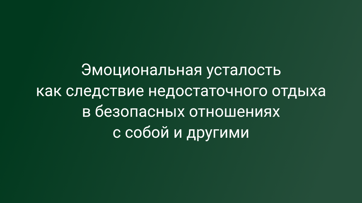 По Питу Уокеру, так же как ложное чувство голода имеет чисто эмоциональную подоплёку, так и чувство усталости может не быть связано с недосыпом и физическим истощением. Он считает, что эмоциональная усталость возникает из-за того, что вы недостаточно отдыхаете в безопасных отношениях с самим собой или с другим человеком. Это эмоциональное истощение часто маскируется под физиологическую усталость. К сожалению, со временем и та, и другая могут тесно переплестись. Распространённая ловушка. Усталость➡страх➡активация внутреннего критика➡он говорит, что усталость=недопустимое несовершенство➡бегство от отдыха в трудоголизм и занятость➡физическое истощение, обессиливание➡болезненное погружение в депрессию➡бегство в трудоголизм и занятость при первых признаках пополнения адреналина и далее цепочка замыкается, периоды резкой смены от адреналиновых выбросов к болезненной депрессии продолжаются. "Лечение эмоциональной усталости физиологическими методами является тупиковым. Ограниченная эффе