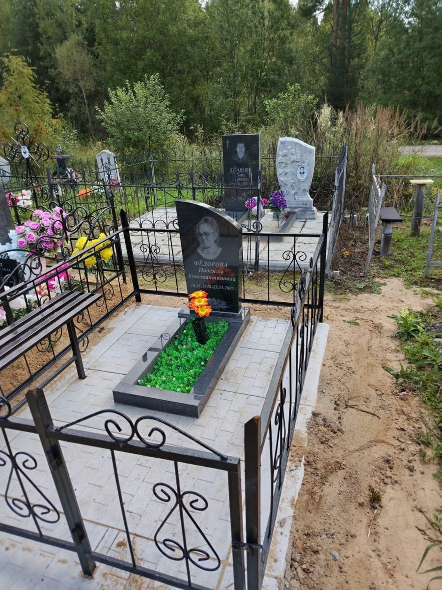 Показываю результат моего заказа на кладбище у мамы. Окончательный вариант с травкой, вазой и букетом.