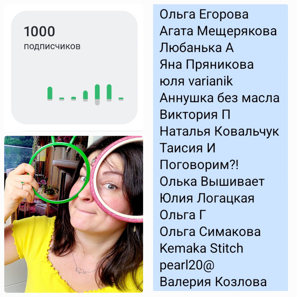 Привет, вышивальный мир 🪼 В разгар [предположительно] рабочего дня, сижу-отвечаю на ваши тёплые послания под последним видео и составляю список участниц в розыгрыше, который проведу сегодня в полночь🦋 На фото имена девчонок, которые оставили комментарии подо всеми тремя роликами, что вышли с момента анонса "розыгрыша". Ещё есть время оставить свои комментарии и запрыгнуть в последний вагон списка (или проверить, не потеряли ли я вас случайно при подсчётах).