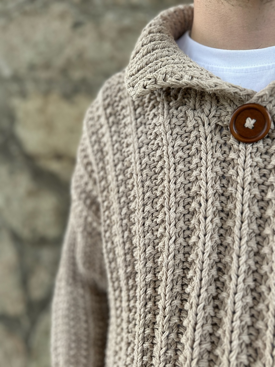 С любовью связала Полина для с своего мужа! Вязала из yarnart eco cotton в 4 нити на 8х спицах, на свитер ушло чуть меньше двух килограмм. Друзья, спасибо, что делитесь Вашими работами! Напомню, что полную информацию про этот свитер Вы можете посмотреть в моей статье! Все про свитер Брата! Благодарю за внимание!