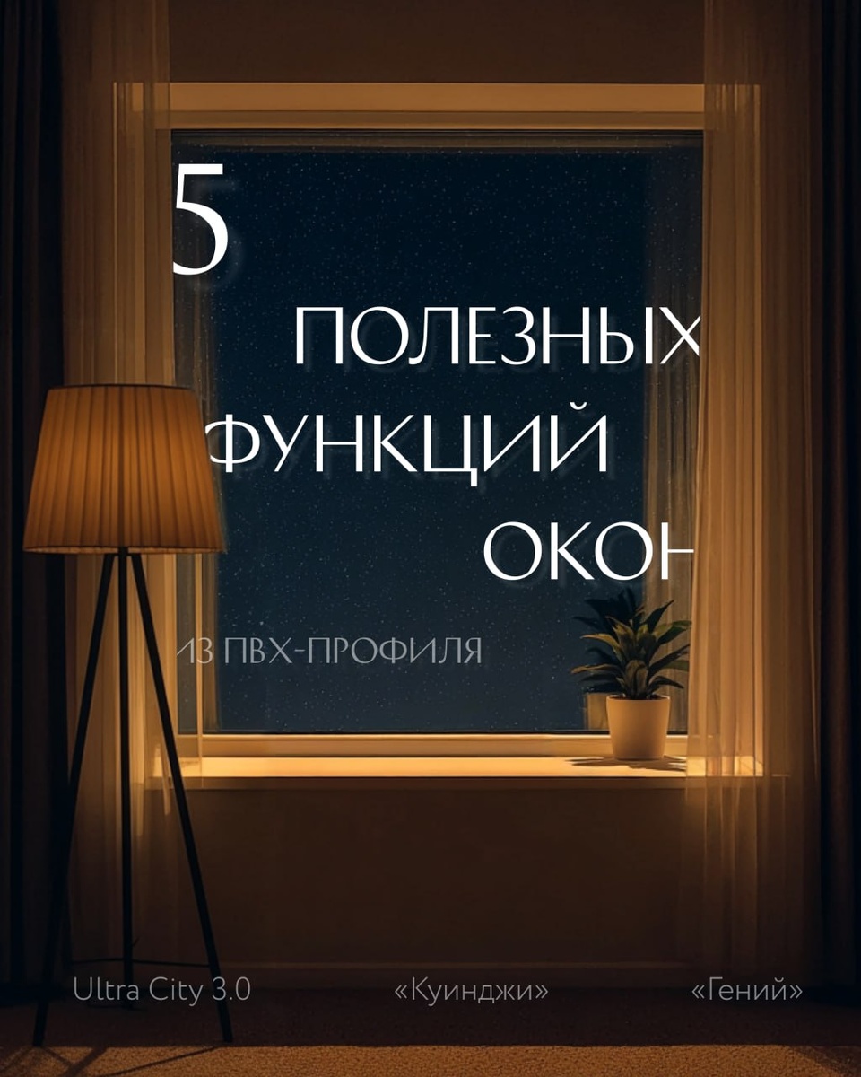 Как окна влияют на жизнь в доме Утро начинается с чашки кофе у окна, за ним уже просыпается город. Но в доме – тишина, будто мир за стенами выключили. Днём солнечный свет наполняет комнату, но внутри сохраняется прохлада. В проектах «Куинджи», Ultra City 3.0 и «Гений» мы установим окна современного ПВХ-профиля. Вместе с Институтом окна мы тестируем конструкции и обучаем инженеров, чтобы окна сохраняли комфорт не меньше 10 лет. В карточках – детали, которые делают окна особенными и помогают дому быть тише, теплее и уютнее.