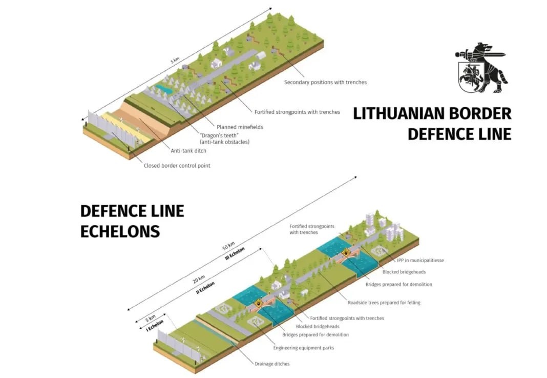Правительство Литвы уже осенью 2024 года приступило к укреплению пограничных укреплений вокруг Сувалкского коридора, внедрив там некоторые из элементов, упомянутых выше.