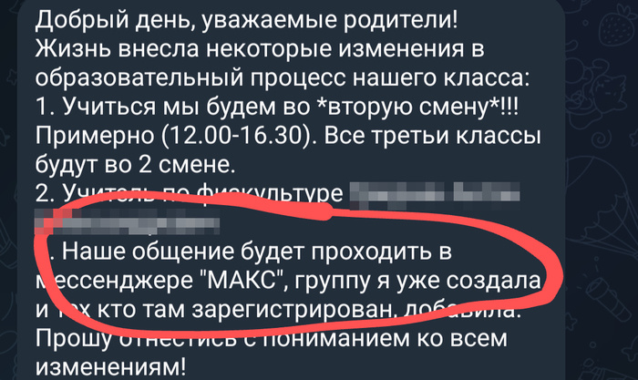 Теперь если ты хочешь быть в курсе школьных дел своего ребенка - ты обязан установить себе софт, который тебе вообще не тарахтел?! Это что - продвижение монополии на государственном уровне?! UPD: Меня не столько волнует отечественность мессенджера (наоборот, делать своё - это замечательно), как его навязывание со всех щелей. Сам мессенджер, по факту, никому не нужен. Тот же телеграм полностью покрывает весь функционал. Огорчает, что такая ситуация с клонами во всем. Делаем что-то свое. Понимаем что это не вывозит конкуренцию. В наглую устраняем запрещаем конкурентов. Не оставляем альтернатив. Читать комментарии на Пикабу.