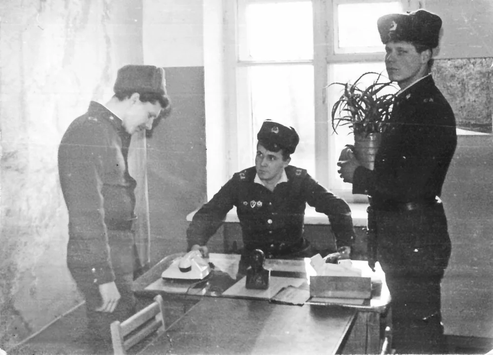 1. Андрей Артеменко поделился: "В учебке было это… Под конец! Весной пахло... "малым дембелем"... Какое-то воскресенье и что-то в клубе готовят для л/с. Но ведь как, любишь медок, полюби и холодок. Через преодоление. И затеяло руководство сделать поротные пробежки до праздника. Побежали по моему 2 километра. Ну никак не в жилу. Короче я на втором километре "споткнулся" и упал в лужу. "Разбил колено, подвернул ногу и еле доковылял до финиша." Я очень хорошо запомнил взгляд ст. срж. Акулина. Посмотрел,... и ничего не сказал. Одним словом все пошли на концерт, а я в суточный наряд в учебный корпус. Наряд не сложный. Длинный коридор , примерно метров 50. По обе стороны закрытые кабинет. Вся забота за ночь натереть деревянный дощатый коридор мастикой. Я не знаю это была традиция или это только для меня задание было, но когда меня туда ставили было сказано - по три доски от стен натирать в шашечку на ширину щётки. Сверху это не видно, а вот так как на фотографии, от солнца - красота армейс