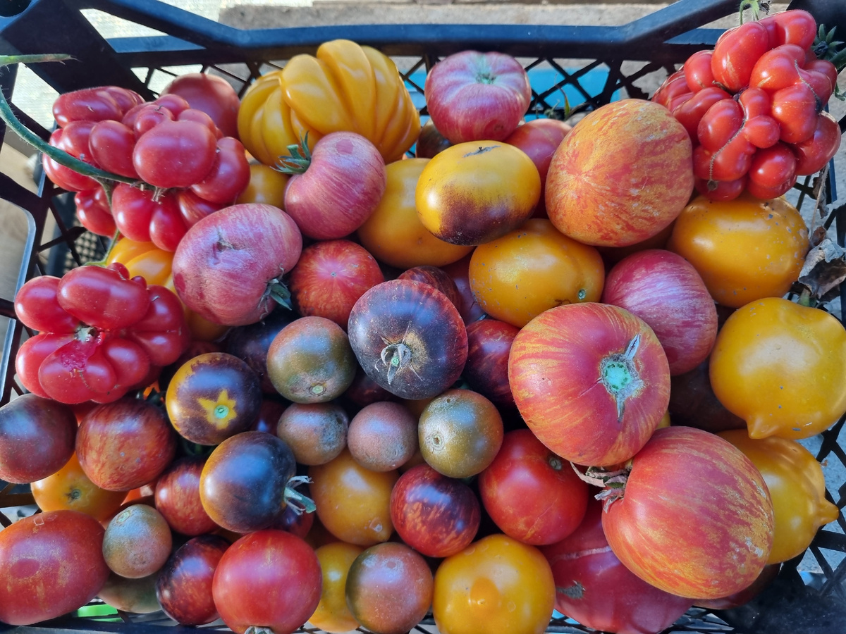 Разумеется, хорошо! - скажут многие и будут правы. Только вот нынче с помидорами у меня вышел легкий перебор. Я нам уже засолила на зиму 50л (я б с радостью засолила и больше, только хранить негде), сегодня собрала ящик, а муж, взглянув на грядки, спросил:"ты где их собирала-то? Вон, все на месте висят!". По опыту прошлых 2 сезонов я честно не расчитывала на такой урожай. При таком же количестве кустов урожая было вдвое меньше. Да, под конец сезона я уставала от заготовок, но хватало ровно на то, чтобы наесться вдоволь, сделать соленья, соусы и все. Нынче же я уже не знаю куда девать эти помидоры! Мы шутим, что у нас скоро помидоры станут добавкой к кашам, мюсли, варенья из помидоров варить будем и так далее😁 Вроде, хорошо. Есть излишки и можно (нужно) их продавать. Только вот излишки нынче есть у всех и у нас помидоры продают уже по 30р, и их никто не берет. А мне свои по 30р продавать жалко (по 30р продают обычные, которые я считаю невкусными и у себя такие сажать не буду ни за