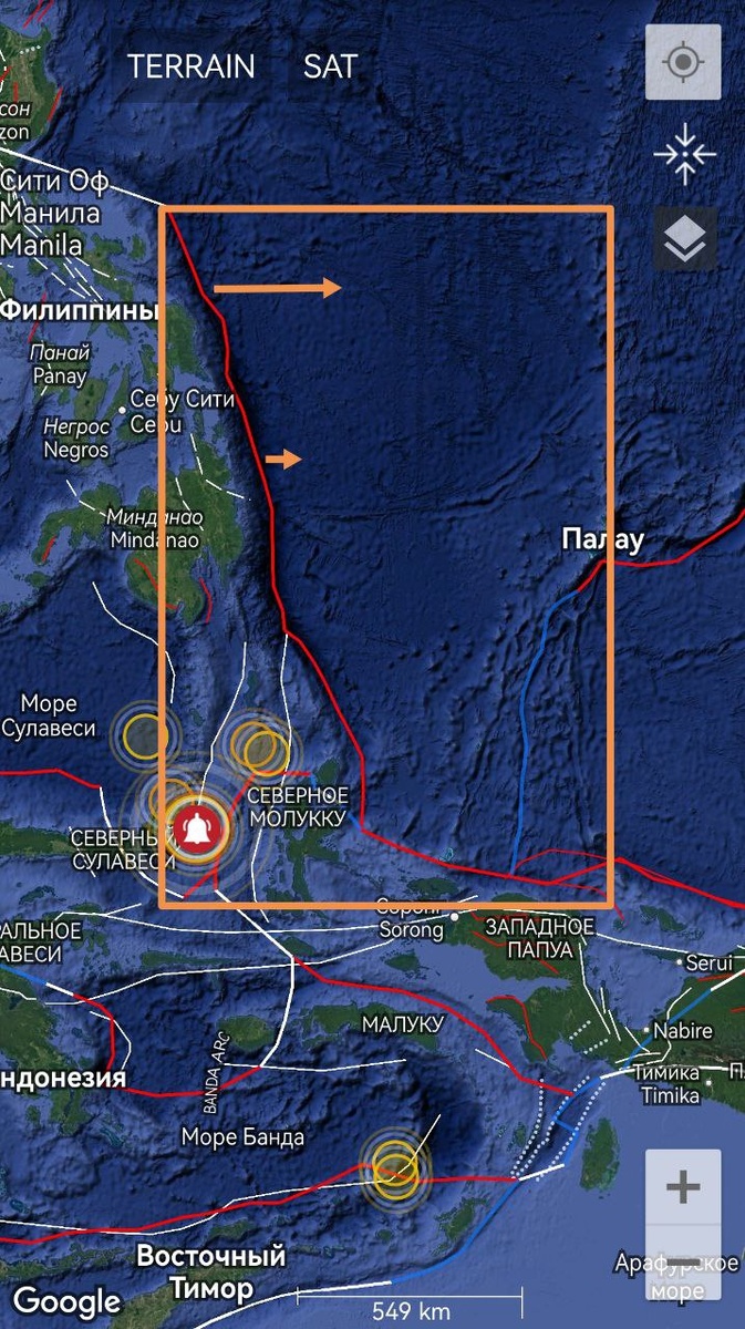 Молуккское море продолжает потряхивать слабыми событиями, но сейсмический потенциал зоны допускает более сильное землетрясение - до М7+. Сегодняшний ОСТИ - тому подтверждение. ===== The Molucca Sea continues to shake with weak events, but the seismic potential of the zone allows for a stronger earthquake - up to M7+. Today's CSTI is proof of that.