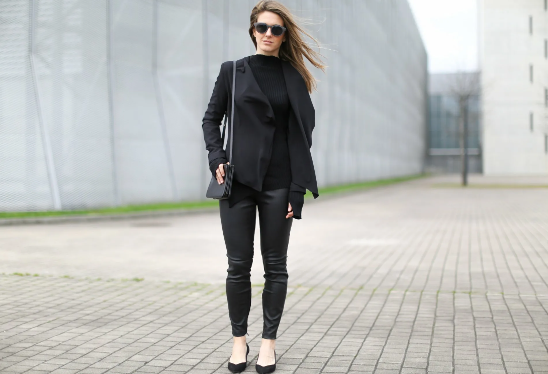 Он делает фигуру плоской, убирает объём — и часто вместе с ним убирает всё живое. Если ткань блестящая, наоборот — подчеркнёт лишнее. Если крой плохой — получится прямоугольник из чёрного полотна.