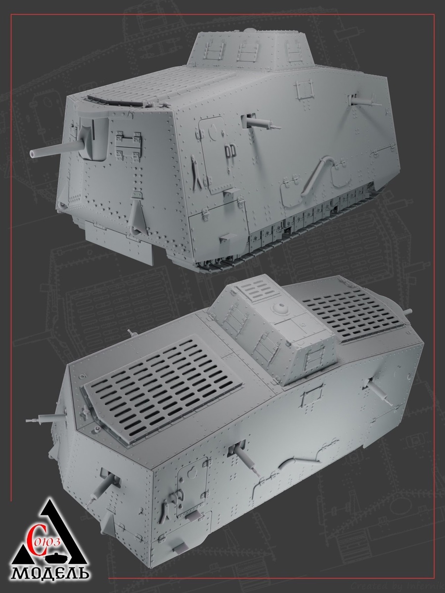 Пензенская "Союз Модель" выпустила на 3D-принтере модель германского танка Первой Мировой войны Sturmpaznerwagen А7V в масштабе 1/72