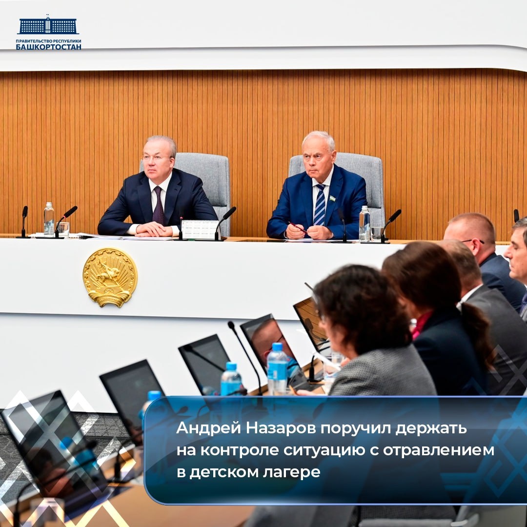 Андрей Назаров поручил держать на контроле ситуацию с отравлением в детском лагере 💬 На оперативном совещании в Правительстве Республики Башкортостан под председательством Премьер-министра Андрея Назарова рассмотрели ситуацию с отравлением в детском лагере «Патриот» в Стерлибашевском районе. ℹ️ В инфекционный центр г. Стерлитамак поступило 25 пострадавших с признаками отравления, среди них 22 ребенка; 9 человек отпущены домой после оказания медицинской помощи. — Все профильные ведомства оперативно отреагировали, угрозы распространения инфекции нет. Всем пострадавшим оказывается квалифицированная медицинская помощь. В причинах произошедшего разберемся, — отметил Андрей Назаров. ⚠️ Деятельность лагеря «Патриот» приостановлена на время служебной проверки. Руководитель регионального кабинета министров поручил профильным ведомствам держать ситуацию на контроле.