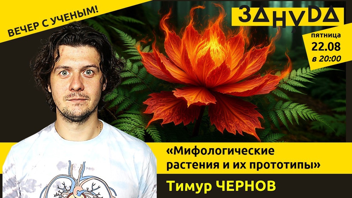 в пятницу у "Зануды" тут намечается интересная лекция. Слышали про Цветок Папоротника? А про Аленький Цветочек или может быть про что-то другое из множества сказочных растений? Все это плод человеческого воображения или же у этих растений есть реальные прообразы? Вот как раз об этом — о мифологии и о ботанике в свой лекции "Мифологические растения и их прототипы" расскажет биолог, научный сотрудник лаборатории молекулярно-биологических и нейробиологических проблем и биоскрининга МФТИ, учитель биологии Чернов Тимур! Регистрация: https://zanuda.timepad.ru/event/3529320/