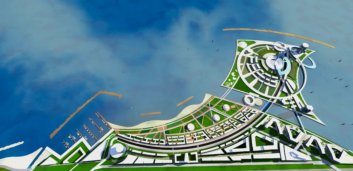 На поднятых парусах» Вдохновением на создание проекта стала форма насыпной части, она напомнит греческую Триеру. Мы постарались сохранить образ корабля, при этом добавить функциональности. В нашем проекте есть четкое разделение на жилую зону, гостиничную и рабочие пространства. В центральной части насыпного острова центр притяжения и нашей композиции – театр с открытой сценой, под трибунами которого располагаются выставочное пространства и павильоны для аренды. На острове присутствуют 2 доминанты с офисными и выставочными пространствами. Часть острова занимает парковая и развлекательная зона, разделителем которой служат апартаменты разной высотности. Насыпная материковая часть имеет 4 гостиницы с видовыми балконами, расположенными на разных уровнях. Все гостиницы объединяет стилобат в виде общественных пространств и на крыше которого можно гулять среди зе