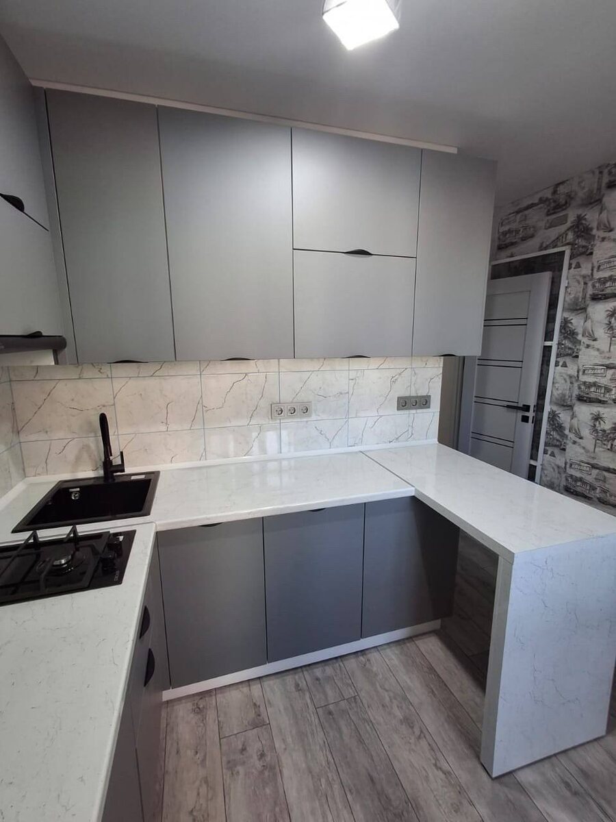 Модульная кухня с фасадами "soft touch" от Екатерины Ермак. Дизайнерское решение для нестандартной разводки газовых труб. телефон дизайнера +79788209901 👉🏻г.Керчь, ул.Маршала Еременко, 7Ф Ответим на вопросы 📲 +7 (978) 265 45 50, Viber, WhatsApp Больше моделей можно посмотреть здесь 👉🏻 https://maxiroom.ru/kuhonnye-garnitury/ #мебельныйкрым #мебельныймагазинкрым #уютнаямебель #модульнаякухня #кухни #дизайнкухни #стиль #уют