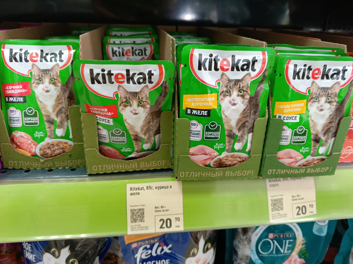 В Фикс Прайсе можно приобрести наиболее популярные марки влажных и сухих кормов для наших пушистых друзей: Kitekat, Whiskas, Purina One, Perfect Fit и Darling, Felix .