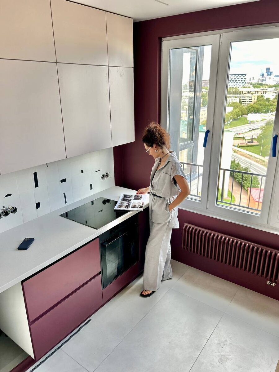 От идеи до реализации. Ягодная кухня в полностью реализованном проекте. Реализацией занималась сама заказчица по моему проекту. ❗️Был один важный выезд для подбора цветов мебели, стен и тканей ——————————————————— Ещё проекты по хэштегу #prorooms_проекты