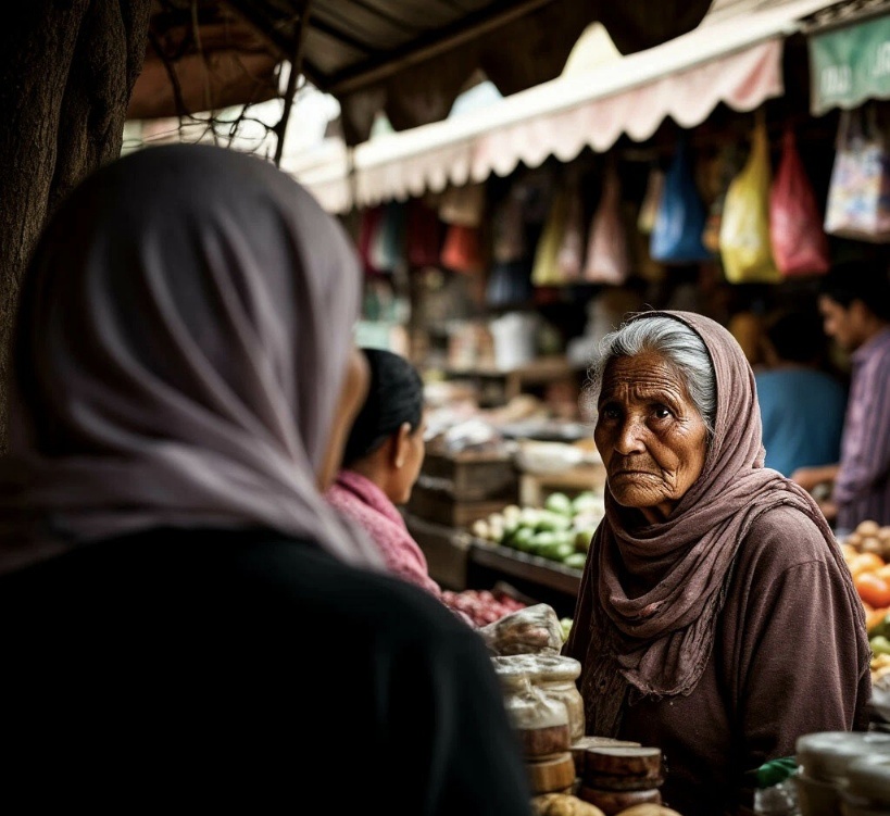 Проходя между прилавками, я боковым зрением заметила невысокую старушку. Она вошла в павильон, осмотрелась, а затем начала ходить между рядов. Однако она смотрела не на товары, а на людей.