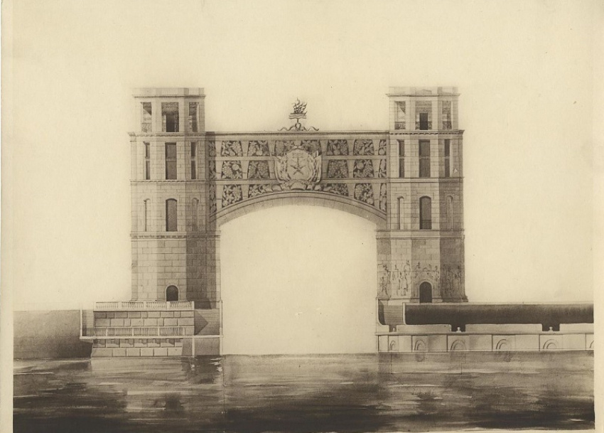 Перспектива средней головы шлюза. Рисунок из Музея МАРХИ.