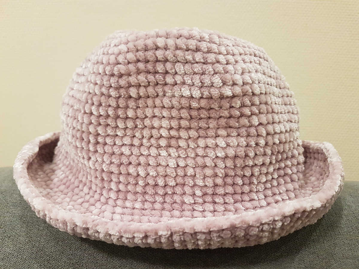 К обхвату головы добавить сантиметр, но в данном варианте из плюшевой пряжи этого можно не делать, панама немного растянется после примерки и во время использования как раз примерно на один сантиметр.