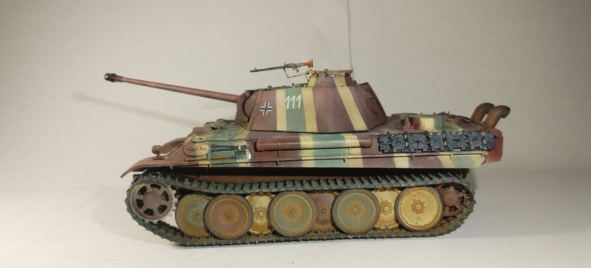 Panther Ausf. G Кирилл Власов (13 лет) Производитель: Takom Масштаб: 1/35 Всем привет! Может собрал я довольно быстро за несколько дней. Собиралась легко. Из дополнений только металлические траки и солдаты которые получились не очень. В качестве базы взял Rotbraun от Jim scale, в качестве дункельба я замешал телесный от Jim scalе и белый от Pacific, размешал и добавил Н79 от Mr.hobby и использовал olive green от Jim scale. Для кавзякинга траком смешал масленную охру и белый от Малевич, для кавзякинга катков я так же использовал масляные и пигменты от ZIP. Камуфляж получился не реалистичные, больше из серии что если. ================================