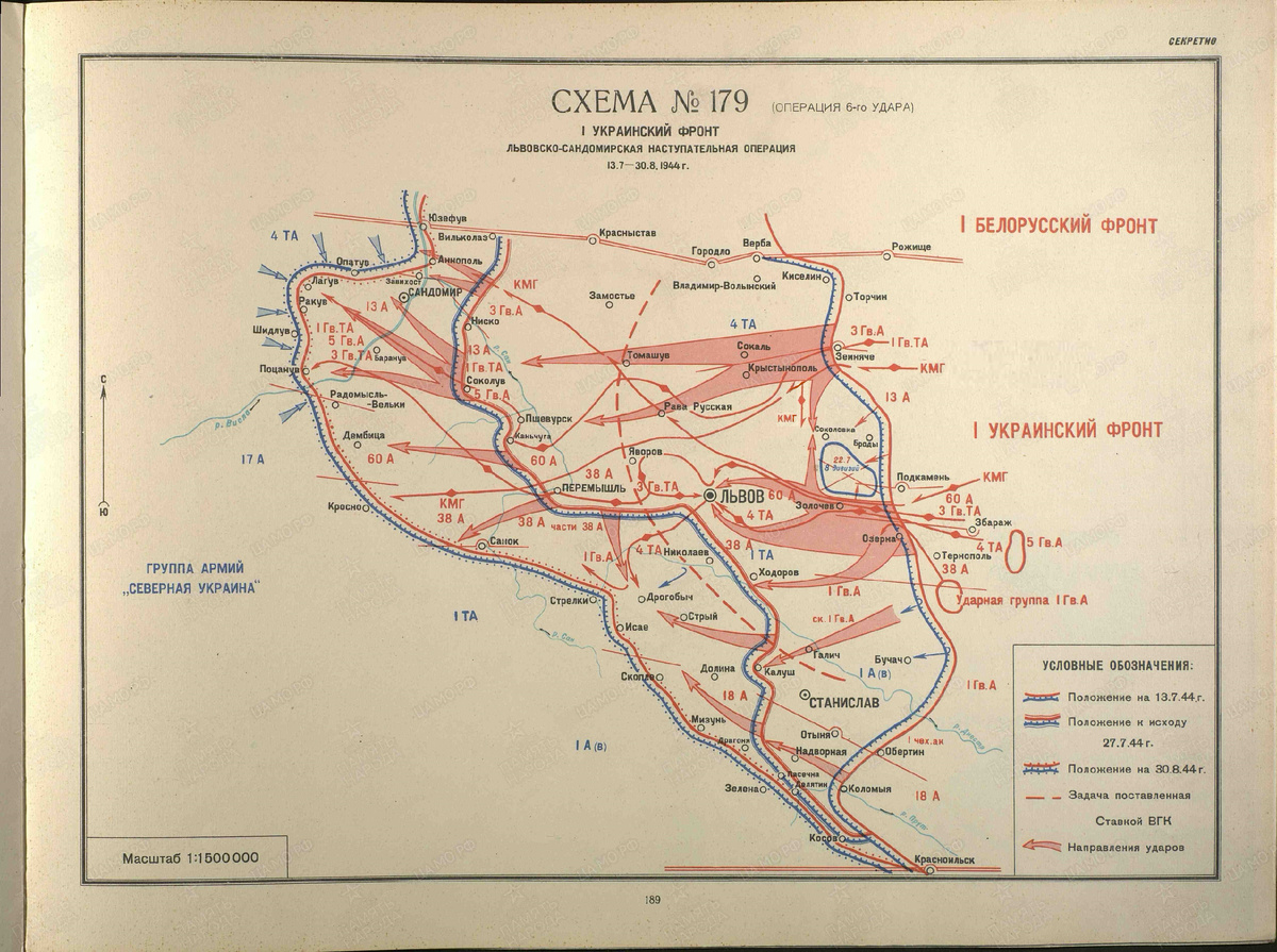 Но надо признать, что основным достижением 1-го Украинского фронта под командованием Маршала И.С.Конева был полный разгром группы армий «Северная Украина» генерал-полковника Йозефа Гарпе приведший к захвату и удержанию (по результатам последующих двухмесячных боёв) Сандомирского плацдарма, ставшего одним из трамплинов для последующего добивающего удара непосредственно по Германии…
