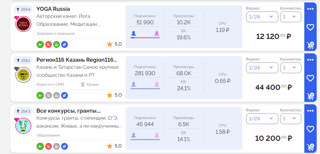 Формата размещения: Посты в начале канала, закрепленные посты, нативные интеграции стоят дороже.