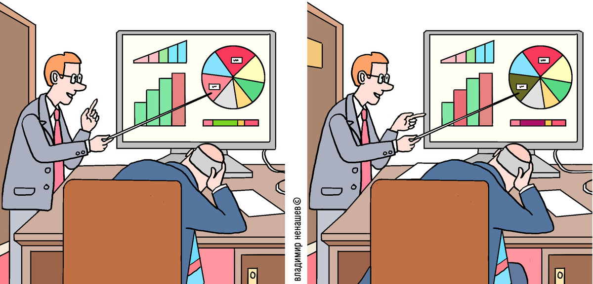 10 отличий для внимания. Всем, кто знаком с офисами, графиками, отчётами приятно будет поискать отличия.