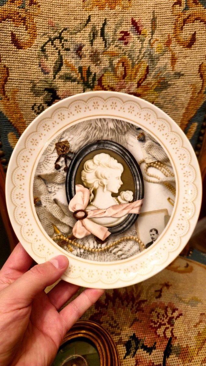 Милая тарелка с камеей 20 см. Можно сказать, редкая. Сзади надпись: Время ужина либо обеда 🙂🫴❤️🔥. Цена 3500.