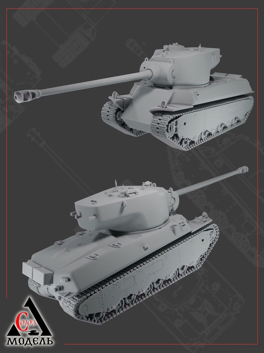 "Союз Модель" из Пензы выпустила на 3D-принтере модель американского опытного танка M6A2E1 1944 года в масштабе 1/72.