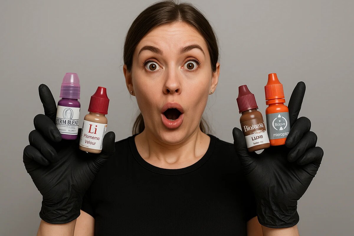 Технически — да, но с большой осторожностью. На практике опытные мастера рекомендуют использовать пигменты одной марки, чтобы избежать непредсказуемого поведения цвета, ухудшения стойкости и аллергических реакций. Почему мастера хотят смешивать пигменты разных брендов? Поиск уникального оттенка. Иногда готовая палитра одной марки не даёт нужного тона, особенно в модных сложных цветах (нюд с лёгким кораллом, розово-бежевый и т. д.).