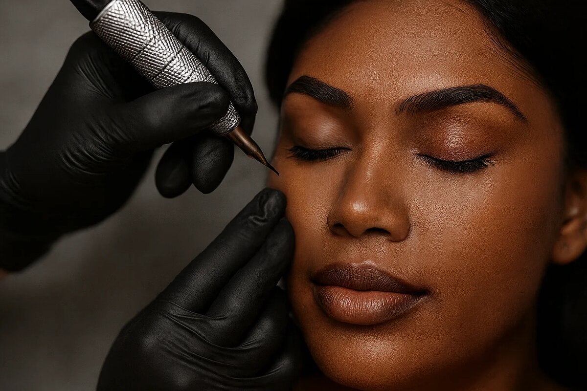 Большинство смуглых кож имеют золотистый или оливковый подтон, который «согревает» любой пигмент. Это нужно учитывать, чтобы избежать слишком тёплого или красноватого заживления. Выбор пигмента для смуглой кожи 1. Оттенок 2. База пигмента 3. Коррекция подтона Техника работы Плотность укладки Глубина введения Скорость и проходы Заживление и прогноз цв