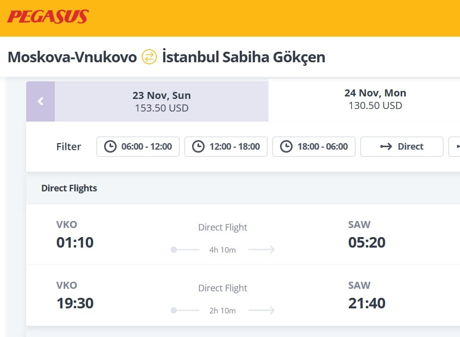 Pegasus Airlines, похоже, просчиталась – в зимнем расписании она намерена долетать из Москвы и Питера до Стамбула за 2 часа