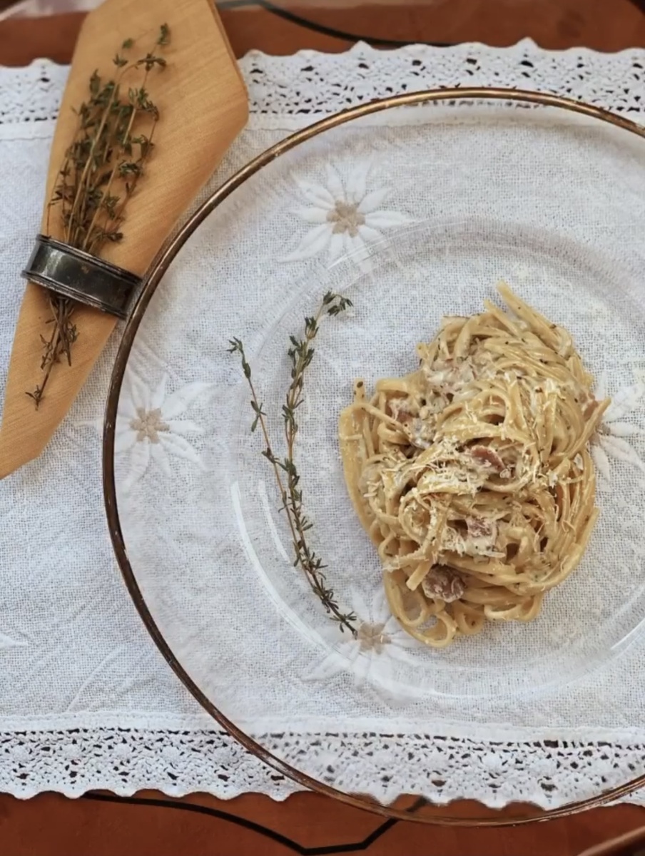 Друзья, в преддверии осени пора запасаться более теплыми и энергосберегающими рецептами. Вчера я осознала, что именно этот рецепт пасты стал для меня в каком-то смысле судьбоносным. Это было первое блюдо, которое я научилась готовить, и, благодаря ему, я влюбилась в кулинарию! Именно с этого блюда начался мой фуд-блог, когда вместе с ресторанными отзывами появились рецепты. И наконец, именно эта паста перевернула мое представление о ‘Карбонаре’: я больше никогда не заказываю ее в ресторанах, а готовлю исключительно дома👌🏻⠀ Без ложной скромности, я никогда раньше не встречала такой необычный и просто незабываемый вкус! И все дело в сыре - Дор Блю, который далек от привычной нам классики, но,поверьте, ваши вкусовые рецепторы будут в восторге. Итак, нам понадобятся: ⠀ Бекон - 200г Сливки 10% - 200 мл ⠀ Сыр Дор Блю - 70г Паста - из расчета 100г на человека⠀ Яйцо - 1шт⠀⠀ Масло для жарки ⠀ Сушёный базилик - по вкусу Соль - по вкусу 🔸 Первым делом нарезаем бекон и сыр кубиками. ⠀