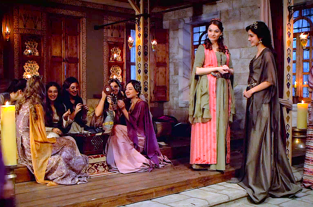 Махидевран так обрадовалась рождению дочки Хюррем, что приказала раздавать вкусности и подарки в гареме! Вот Гюльшах и старается угодить госпоже и побаловать наложниц. У девушек нынче праздник! Одна рабыня говорит загадочно: - Днём золото, вечером угощение! Что же ночью-то будет? И тут ещё одна шутница отвечает: - Сюмбюль ага! И все смеются. Интересно, что и Гюльнихаль пришла полакомиться со стола от Махидевран. Даже Гюльшах удивилась. Ведь Гюльнихаль - служанка и подруга Хюррем. Хотя наверняка кто-нибудь из вас заметит, мол, давно Гюльнихаль не подруга. Однако, такой вот любопытный момент. Ох, не зря здесь эта сцена, ох, не зря! Помните, я говорила, какая из комнат во дворце самая нехорошая? Как нехорошая квартира, сами знаете, в каком произведении.😉 Вспомнили! Конечно же это комната Айше! Мы об этом раньше тут говорили. Так вот, на данный момент соседкой Айше пока является Садыка. Её раньше Викторией звали. Однажды Виктория вынесла из огня маленьких наследников престола. После