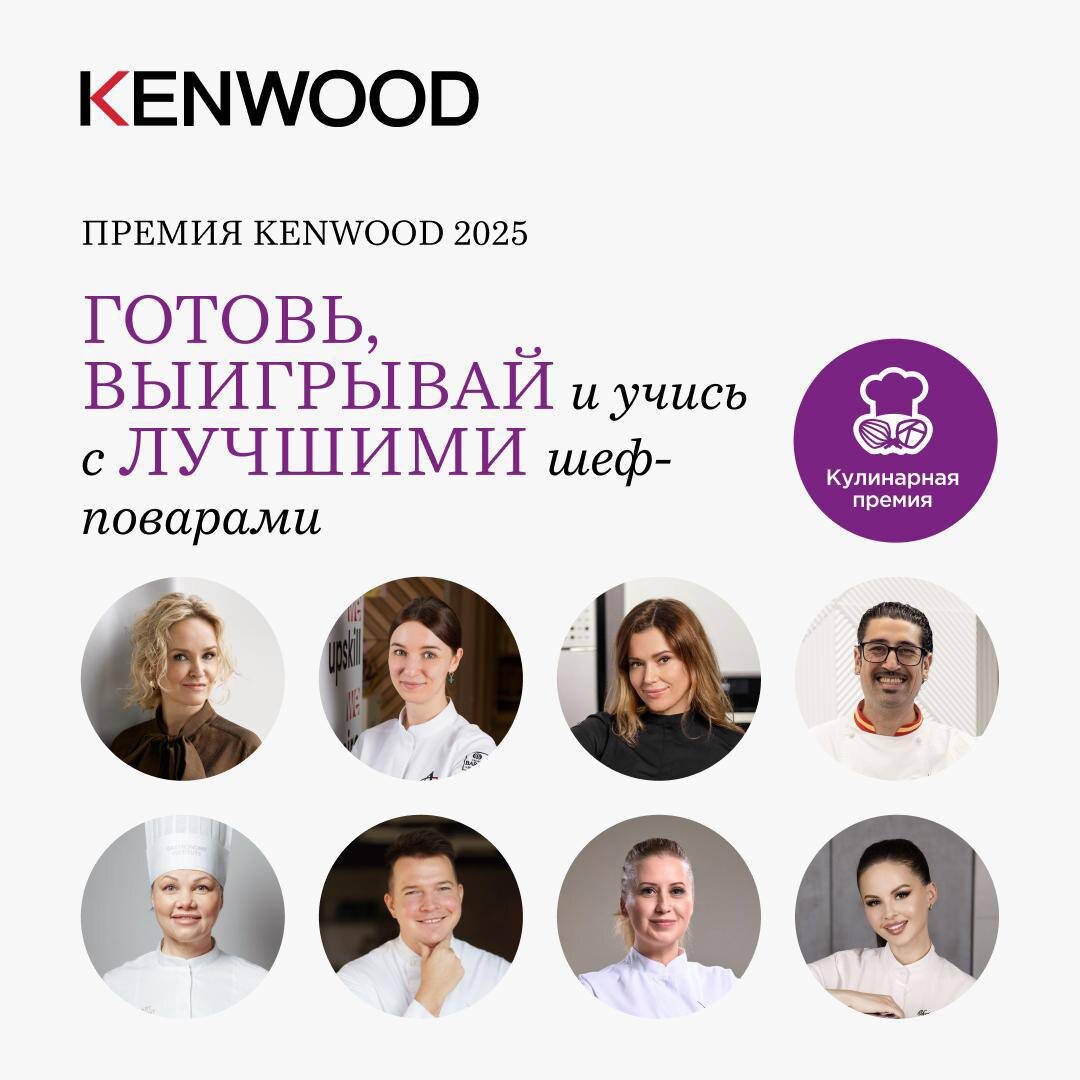 ⭐️ Готовь, выигрывай и учись с лучшими! Уже через неделю, 25.08, начнется самый масштабный конкурс от Kenwood ⚡️ Но уже сейчас вы можете пройти регистрацию в приложении прямо в телеграм по ссылке здесь 25.08 мы начнем 7-недельный марафон вместе со знаменитыми шеф-поварами: готовьте авторские блюда и участвуйте в розыгрыше. 🥇 1 место — Kenwood Cooking Chef XL + 300 000₽* 🥈 2 место — Kenwood Cooking Chef XL + 150 000₽* 🥉 3 место — Kenwood Cooking Chef XL + 70 000₽* 🏅 Приз зрительских симпатий — по 30 000₽ Бонусы для финалистов: ⚡️ Подарки от Kenwood ⚡️ Проведение финала и участие в экслюзивном гастро-ужине с шеф-поварами и рестораторами в Москве Удобное приложение прямо в Telegram, 7 новых и авторских блюд, квизы и челленджи, прямые эфиры с топ-шефами и общение с единомышленниками. Подписывайтесь на телеграм-канал Кулинарной премии Kenwood и следите за всеми новостями уже сейчас - https://t.me/premiyakenwood Вы с нами? 💜 *Денежный приз возможно потратить на шоппинг на са