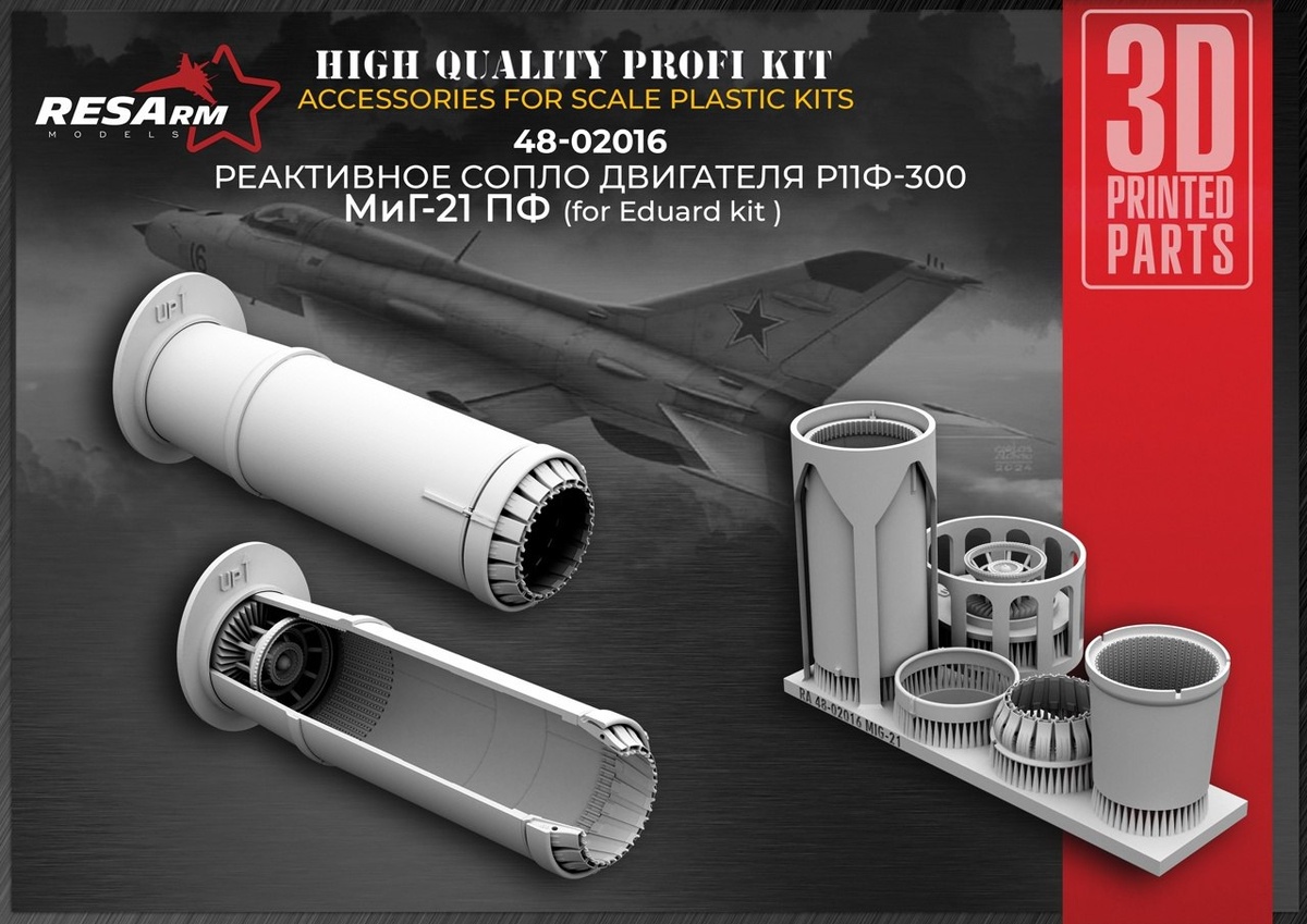 Волгоградская RES Arm выпустила на 3D-принтере сопло и выходной контур двигателя Р11Ф-300 для моделей МиГ-21ПФ в масштабе 1/48.