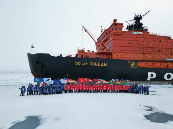 Атомный ледокол «50 лет Победы» прошел 1 200 миль от Мурманска до макушки Земли. На лед вышли представители 21 страны с парадом флагов своих государств, многие из них стали первыми представителями своих стран, побывавшими на Северном полюсе, например – Тимур Абдель Вахаб (Timur Abdel Vakhab) из Египта, Валерия Йорли Гутьеррез Кирос (Valeria Yorley Gutierrez Quiroz) из Боливии, Тиган Бересфорд (Teaghan Beresford) из Намибии, Еаинт Ту Ту Кхин (Eaint Thu Thu Khin) из Мьянмы и другие.
