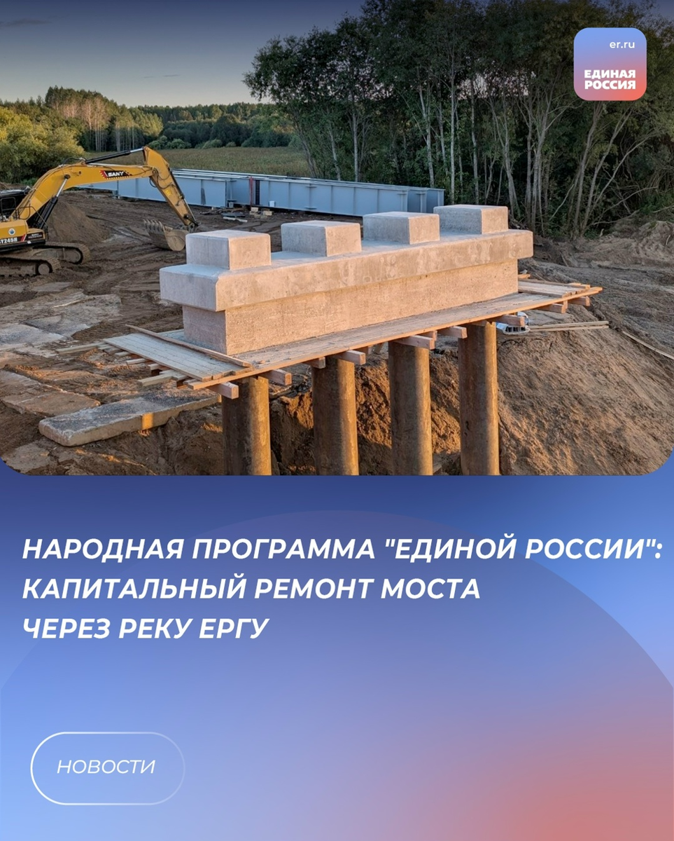 На сегодняшний день готовность объекта превышает 50%. Подрядчик завершил бетонирование опор и готовится к установке пролетных строений. После этого будет выполнено устройство мостового полотна. "Соблюдение сроков капитального ремонта моста через реку Ергу находится на особом контроле," - подчеркнул Александр Цыбульский. Сооружение обеспечивает транспортную доступность куста деревень Верхнетоемского округа с окружным центром и является частью туристического маршрута.