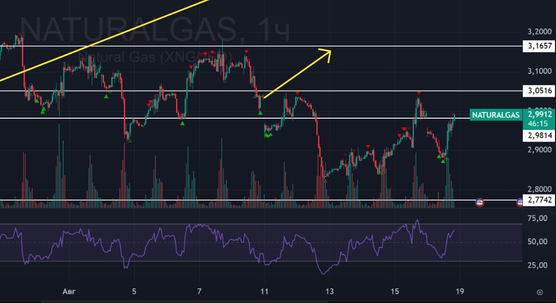 В ответ на пост ⛽️ ГАЗ: обновление! 🟢 Сегодня рисовал цели по газу: первую цель достигли! Пришли на 2,98 и закрепляемся в боковике. 🚗 Жду к верхней границе боковика - сначала 3,05, потом 3,16. #Газ #NG #американскийгаз #Фьючерсгаза #naturalgas #bogdanoffinvest